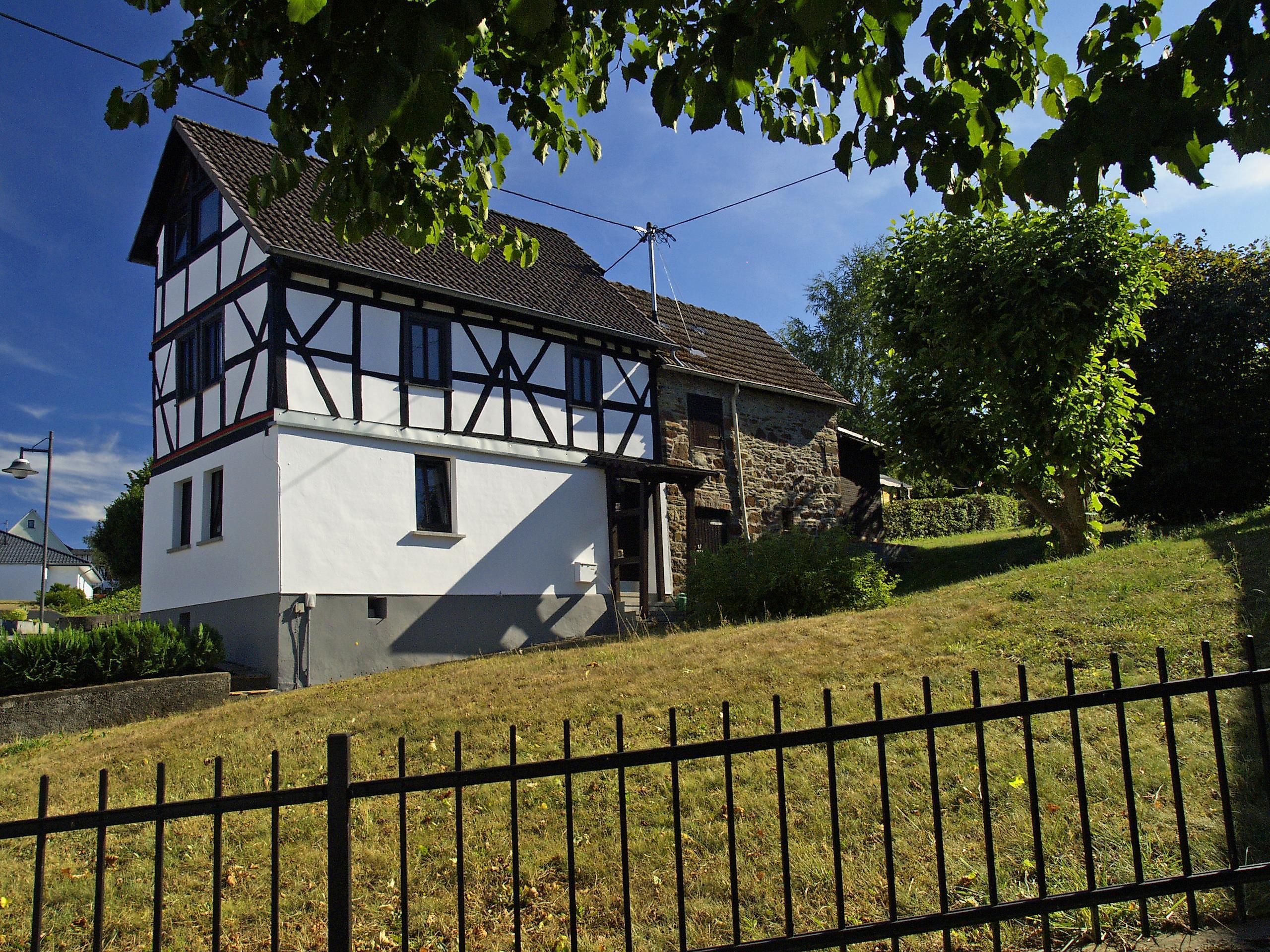 Dieses Fachwerkhaus ist ca. 300 Jahre alt und wurde im Laufe der Zeit einige Male umgebaut. Zuletzt von uns in den Jahren 1987 und 1992. 1987 wurde ein Badezimmer eingebaut (bis dahin gab es noch das sogenannte Plumpsklo im Stall nebenan), die Strom- und Wasserleitungen wurden erneuert sowie das Fachwerk im Innenbereich des Hauses wieder freigelegt. 1992 haben wir das Dachgeschoß aufgestockt und einen neuen Dachstuhl auf das Haus gesetzt. Die Türen sind überwiegend noch in ihrem ursprünglichen Zustand und somit nicht mit unserer heutigen Körpergröße kompatibel. Das heißt für Sie als Gast, dass das Haus von Ihnen etwas „Demut“ fordert, damit Sie sich nicht den Kopf stoßen. Original ist auch die untere Treppe, die bei Begehen deshalb Ihre volle Aufmerksamkeit fordert – rückwärts hilft evtl. und auf Fälle festhalten am Geländer. Auf der anderen Seite gibt es nichts gemütlicheres als ein Fachwerkhaus.Unser Ferienhaus beherbergt im Erdgeschoß eine Küche und ein Bad, im 1. Obergeschoß ein Schlafzimmer mit einem Doppelbett und ein Zimmer mit einem Einzelbett sowie im Dachstudio eine ausziehbare Doppelbettcouch und einen Esstisch mit sechs Stühlen.Die Küche ist vollausgestattet, die Bedienungsanleitungen der einzelnen Geräte finden Sie in der rechten Schublade der Kommode.Im Bad gibt es eine Waschmaschine sowie einen Wäschetrockner.Das Dachstudio ist mit Sat-TV, DVD-Player und Stereoanlage ausgestattet. Hier finden Sie auch eine umfangreiche DVD-Sammlung. Lesebegeisterte, zumindest diejenigen Gäste, die gerne auch noch ein Buch zur Hand nehmen, finden Bücher für Jung und Alt im Einbauschrank.Im Nebengebäude können Sie Ihre Fahrräder und sonstige Gegenstände vorübergehend abstellen.In der Gartenhütte befinden sich Gartenmöbel und ein Schwenkgrill. Damit können Sie es sich irgendwo auf der Wiese bequem machen und auch grillen.