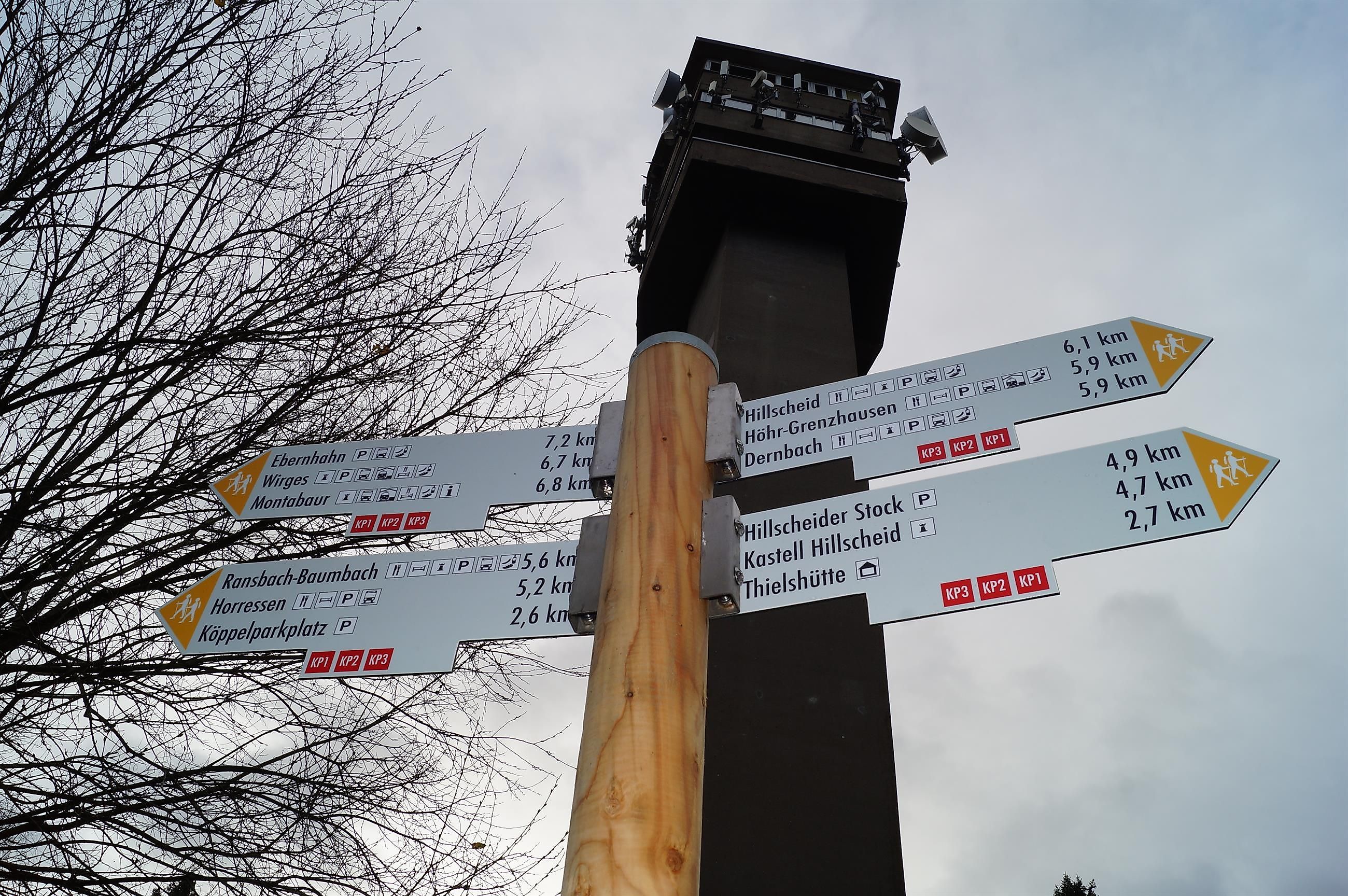 From the A 48 exit Höhr-Grenzhausen, turn left in the roundabout toward the town center. After 300 m, take the second exit in the next roundabout onto a bypass toward Hillscheid. Take the first exit off, then turn left up Bergstraße. At the end, you will reach the hiking car park.