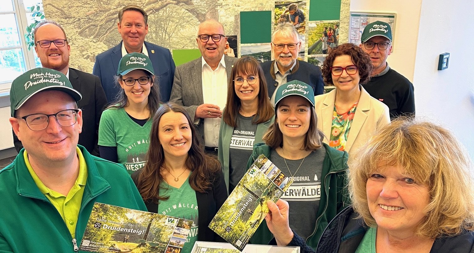 „Wir gehen durchaus selbstbewusst ins Rennen, müssen wir uns doch mit dem Druidensteig in keinem Vergleich vor anderen Regionen verstecken“, betonte jetzt Landrat Dr. Peter Enders bei einem symbolischen Abstimmungsbeginn im Altenkirchener Kreishaus. Dazu begrüßte er die Bürgermeister der beteiligten Verbandsgemeinden Kirchen, Betzdorf-Gebhardshain, Daaden-Herdorf und Hachenburg, die örtlichen Touristiker sowie Vertreter des Westerwald-Sieg Tourismus und der Regionalagentur Westerwald Touristik-Service, wo der Druidensteig zentral vermarktet wird.